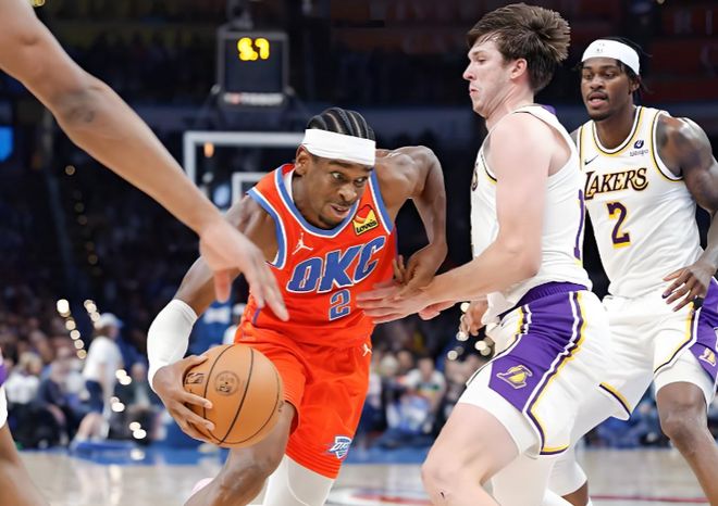 如果這組對(duì)決能夠成真,參考兩隊(duì)此前交手,雷霆全隊(duì)的強(qiáng)悍對(duì)抗確實(shí)讓紫金湖人吃了不少虧。