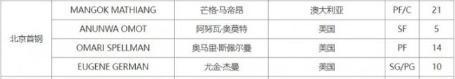 如今北京男籃完成第4外援馬帝昂的注冊(cè),球隊(duì)正式組建四外援陣容,其余3人是斯佩爾曼、杰曼與奧莫特。