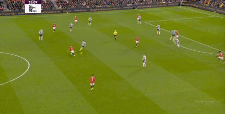 往差了想,你也可以認(rèn)為曼聯(lián)的取勝相當(dāng)幸運(yùn),因?yàn)檫@等同于把一部分防守成功的概率寄希望于紐卡斯?fàn)柕挠⑹竭M(jìn)攻思路,一旦這些球員靈光乍現(xiàn),在肋部打出傳切,曼聯(lián)仍有可能會(huì)因?yàn)檫@一點(diǎn)暴露問(wèn)題。