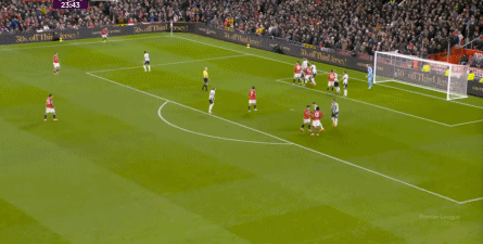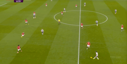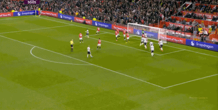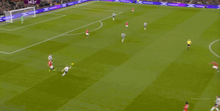 曼聯(lián)唯一一次明顯的風(fēng)險(xiǎn),就是第21分鐘這次: