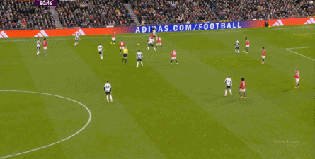 至于如此調(diào)整的原因,往好了想,你可以認(rèn)為阿莫林預(yù)判到了最后要沖上30分鐘的紐卡斯?fàn)栠€是會(huì)用邊路傳中,中路爭(zhēng)頂?shù)姆绞?,所以在此之前,阿莫林就先把門(mén)前的身體布置好,把外圍寬度也覆蓋上,盡力阻撓紐卡斯?fàn)柕倪M(jìn)攻套路。