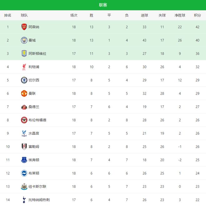 隨著阿森納2-1+曼城2-1!英超最新積分榜:利物浦險勝 維爾茨首球