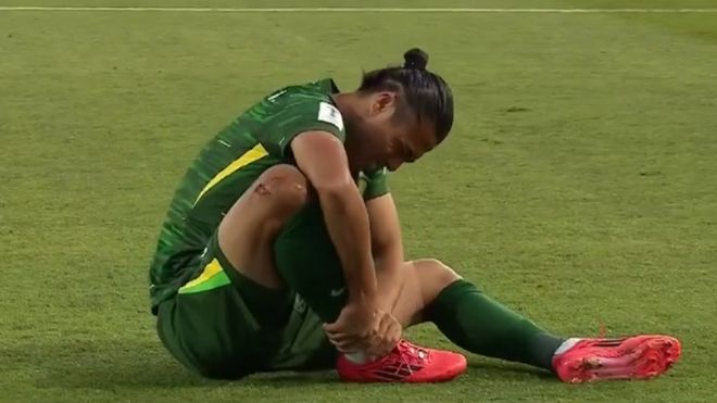 第70分鐘,柏楊禁區(qū)內(nèi)拉倒維克里,主裁判判罰點球并且黃牌警告柏楊,索耶主罰點球破門,1比2!